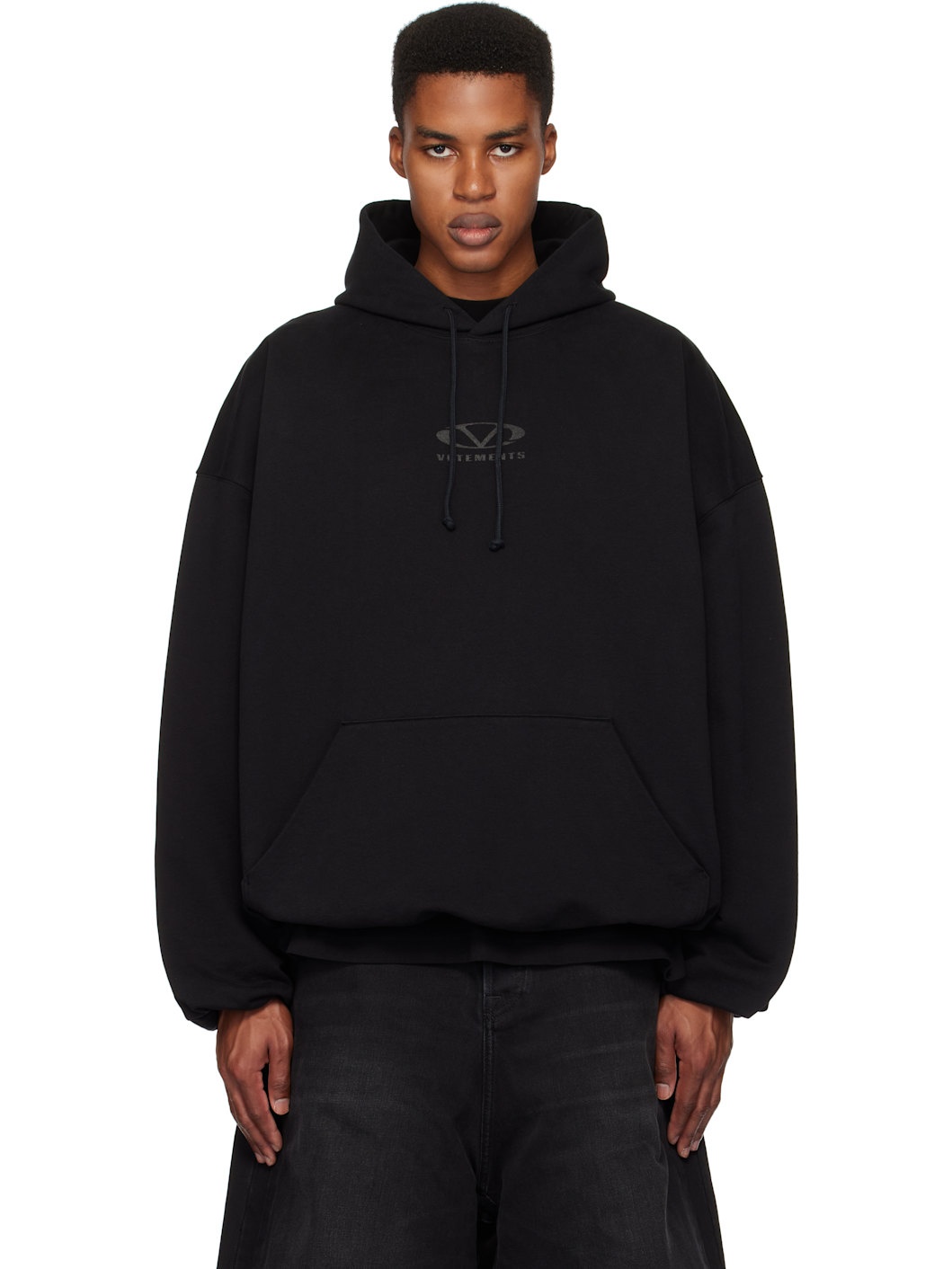 Boxy-fit cotton-blend French terry hoodie. · Drawstring and embroidered logo at hood · Logo graphic printed at chest · Kangaroo pocket · Gathering at rib-knit hem and cuffs · Dropped shoulders · Full jersey lining Supplier color: Black