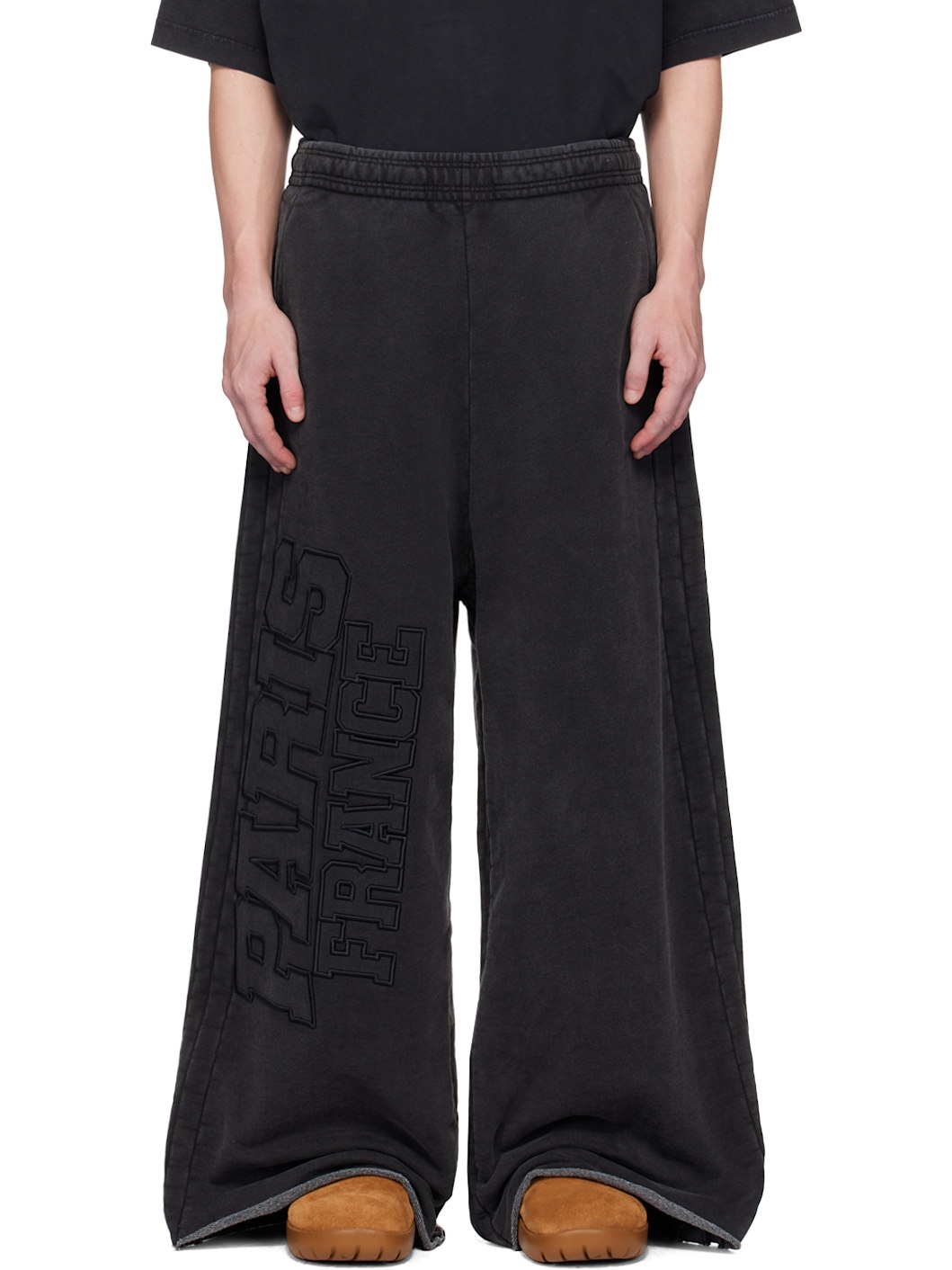 French terry sweatpants. Fading throughout. · Concealed drawstring at elasticized waistband · Three-pocket styling · Text embroidered at leg · Rolled edge at cuffs Supplier color: Washed black