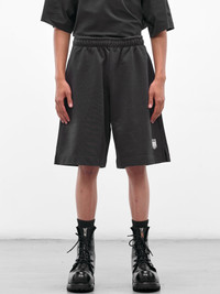 These washed black French terry shorts offer a relaxed vibe, with a concealed drawstring waistband and vented outseams. A graphic printed cuff and logo embroidery at the back pocket add subtle branded touches. Featuring: • Baggy fit and wide leg • Concealed drawstring at elasticized waistband • Three-pocket styling • Graphic printed at cuff • Vented outseams • Logo embroidered at back pocket • Made in Portugal • 80% Cotton 20% Polyester • Standard sizing Model is 5'11.5" wearing size M. Shoulders: 18" Chest: 36" Waist: 30"