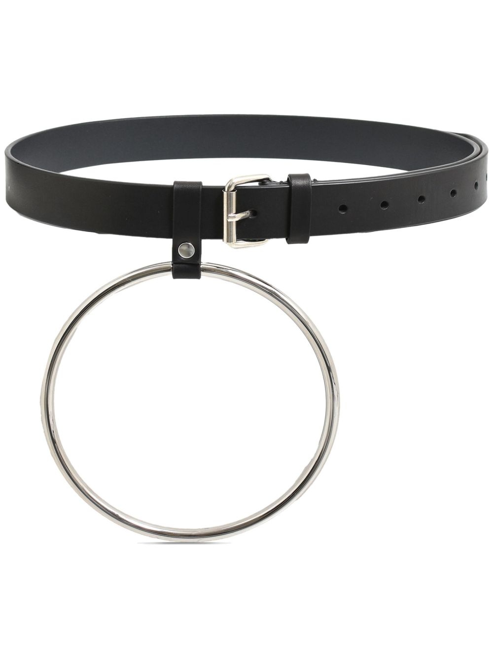ring leather belt Highlights - Black - Calf leather - Smooth grain - Ring embellishment - Buckle fastening - Adjustable fit Imported Composition Calf Leather 100%, Metal 100% SIZE & FIT Measurement TOTAL LENGTH 41.33 in(105 cm) WIDTH 1.18 in(3 cm)