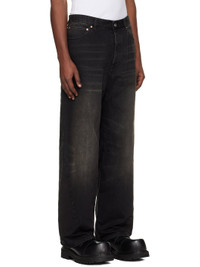 Non-stretch denim jeans. · Fading and whiskering throughout · Belt loops · Five-pocket styling · Button fly · Curved inseam and outseams · Logo-engraved silver- and copper-tone hardware Supplier color: Night black Body: 100% cotton. Trim: 65% polyester, 35% cotton. Made in Italy 261669M186010