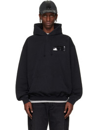 French terry hoodie. · Drawstring at hood · Tape applique with logo at hood and chest · Kangaroo pocket at front · Rib-knit hem and cuffs · Dropped shoulders Supplier color: Black Body: 80% cotton, 20% polyester. Trim: 74% cotton, 24% polyester, 2% elastane. Made in Portugal 261669M202023