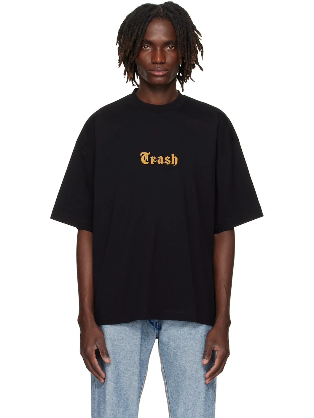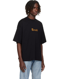 Stretch cotton jersey T-shirt. · Rib-knit crewneck · Text embroidered at front · Dropped shoulders · Logo embroidered at back collar Supplier color: Black 97% cotton, 3% elastane. Made in Portugal 252669M213012