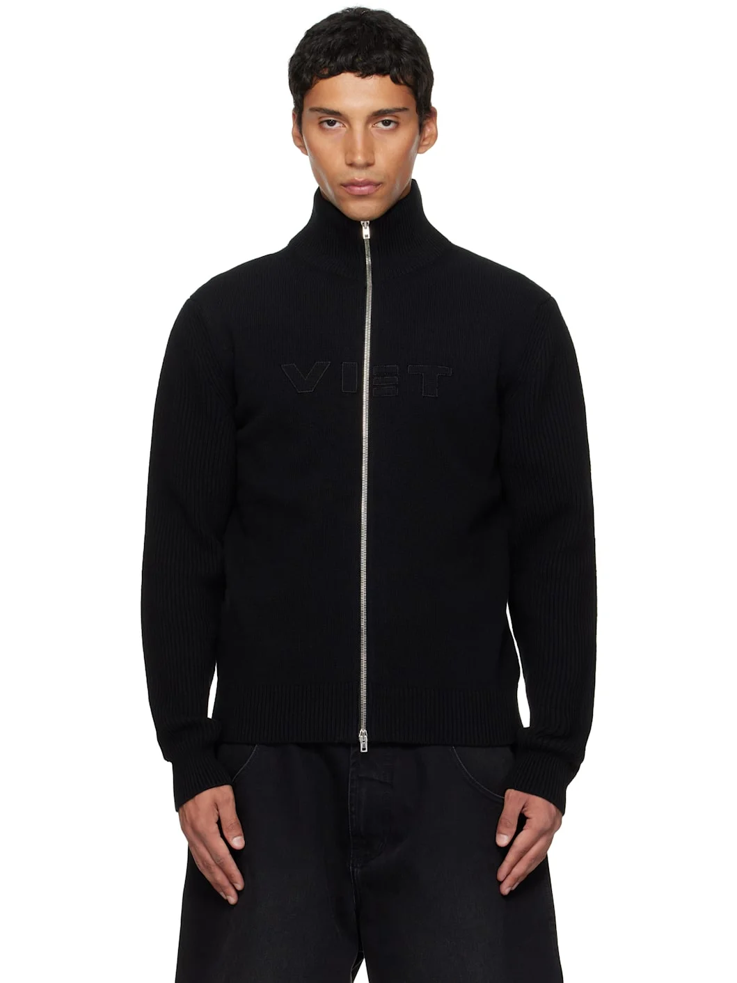 Rib-knit wool-blend sweater. · Stand collar · Two-way zip closure · Logo embroidered at chest Supplier color: Black 90% wool, 10% cashmere. Made in Italy 252669M202020