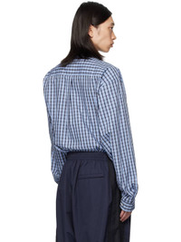 Cotton poplin shirt. · Check pattern throughout · Spread collar · Silk satin tie applique at concealed button closure · Logo-embroidered patch pocket at chest · Shirttail hem · Buttoned barrel cuffs · Box pleat at back yoke Supplier color: Blue check Body: 100% cotton. Trim: 100% silk. Made in Italy 252669M192003
