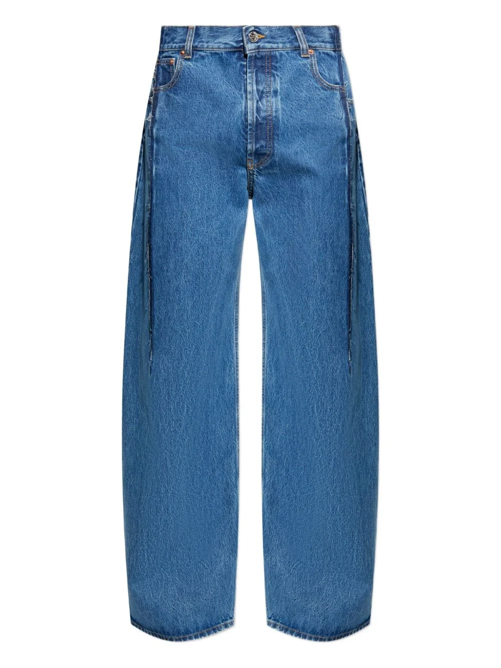 frayed-detail balloon jeans Highlights - Blue - Balloon shape - Frayed hems - Leather label - Central zip fly - Five-pocket styling Made in Italy Composition Cotton 100% Washing instructions Read Manufacturer Guidelines