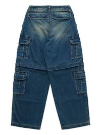 wide-leg jeans Highlights - Blue - Front button and zip fastening - Belt loops - Side cargo pockets - Side slit pockets - Rear flap pockets - Wide-leg Imported Composition Fabric 100% Washing instructions Read Manufacturer Guidelines