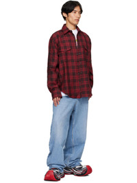 Non-stretch denim jeans. · Fading, whiskering, and subtle distressing throughout · Belt loops · Four-pocket styling · Button fly · Paint graphic and topstitched logo at back pocket · Logo-engraved silver- and copper-tone hardware · Contrast stitching in tan Supplier color: Anarchy blue Body: 100% cotton. Lining: 65% polyester, 35% cotton. Made in Italy 252669M186004