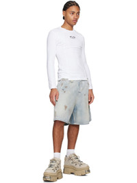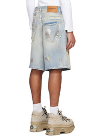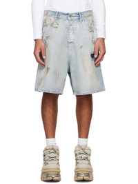 Blue Trashed Denim Shorts