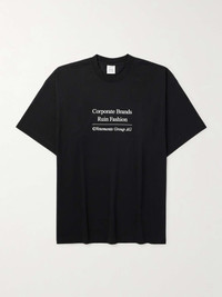 Vetements has made waves for its cheeky slogan tees. This version is cut for an oversized fit from cotton-jersey and embroidered with the label's "Corporate Brands Ruin Fashion" motto. Size & Fit - Fits true to size. Take your normal size - Designed for an oversized fit - Dropped shoulder seam - Mid-weight, slightly stretchy fabric - Model is shown wearing a M - Model measures: chest 38"/ 96cm, height 6'0"/ 183cm Details & Care - Black cotton-jersey - 100% cotton - Machine wash