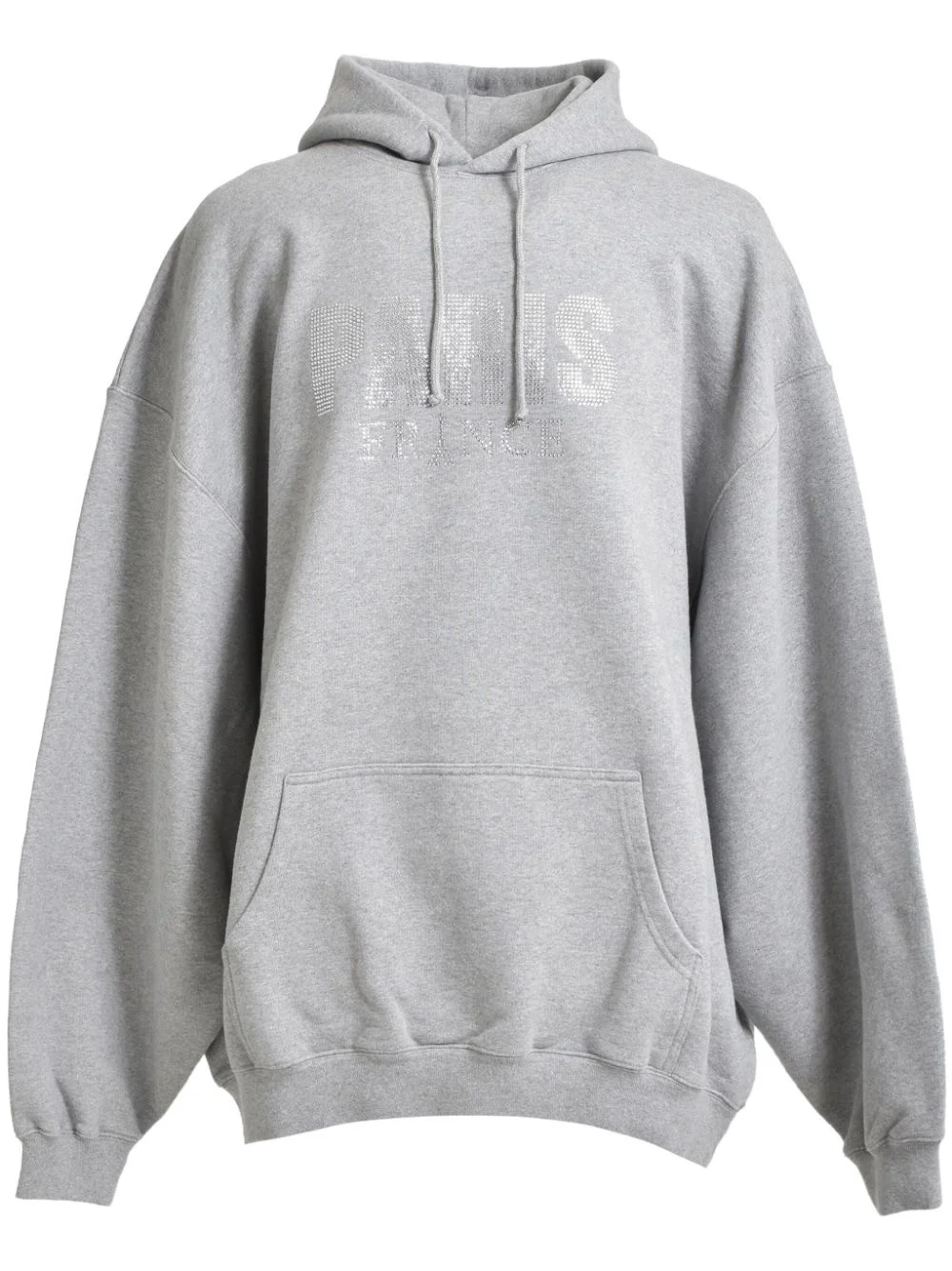 stud-embellished hoodie Highlights - Grey - Cotton blend - Jersey texture - Drawstring hood - Logo print to the front - Silver-tone stud embellishment - Front pouch pocket - Long sleeves - Ribbed cuffs and hem - Straight hem Imported Composition Cotton 80%, Polyester 20%