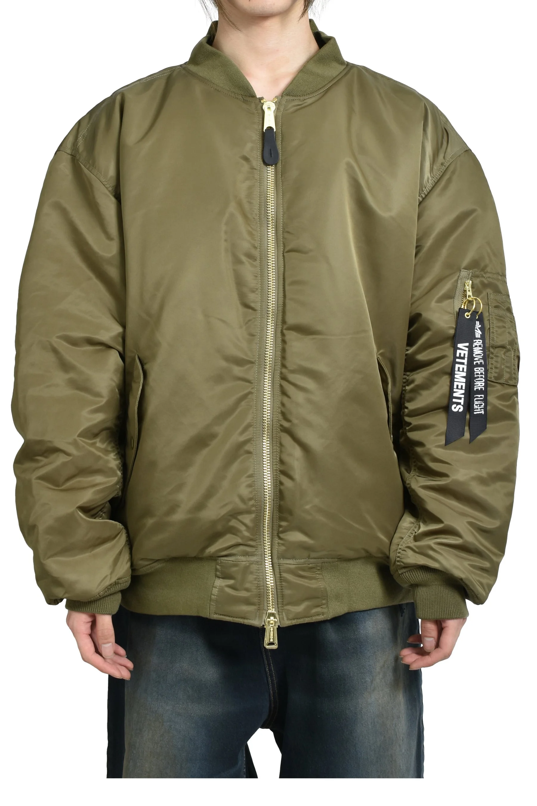 Sizing Size Length Pit to Pit Shoulders Sleeve Length XS 72cm 81cm 64cm 69cm S 74cm 83cm 66cm 70cm M 76cm 84cm 68cm 72cm Product Detail - Gender: MEN - Designer: VETEMENTS - Categories: メンズ ボンバージャケット VETEMENTS x Jackets Coats - Material: NYLON 100%(SHELL), POLYESTER 100%(LINING) - Model Number: uh76bo450go-grn