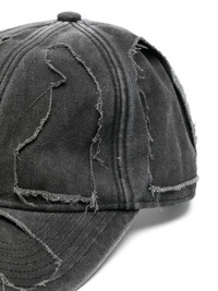 Destroyed denim cap Highlights - Black - Denim - Washed - Twill weave - Distressed finish - Ripped detailing - Embroidered logo to the rear - Round crown - Six-panel construction - Curved narrow brim - Rear touch-strap fastening Imported Composition Cotton 100% SIZE & FIT Measurement BRIM 2.8 in(7 cm) CIRCUMFERENCE 22 in(56 cm)