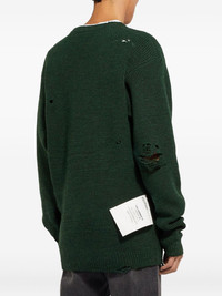 distressed-effect wool sweater Highlights - Forest green - V-neck - Drop shoulder - Long sleeves - Ribbed cuffs and hem Made in Italy Composition Wool 100% Washing instructions Read Manufacturer Guidelines