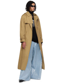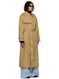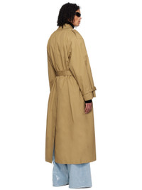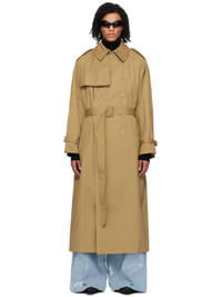 Heavyweight cotton gabardine trench coat. · Hook-eye fastening at spread collar · Double-breasted button closure · Belt loops and detachable pin-buckle belt · Welt pockets · Button epaulettes · Dropped shoulders · Adjustable cinch tabs at cuffs · Central vent at back hem · Full viscose satin lining Supplier color: Beige