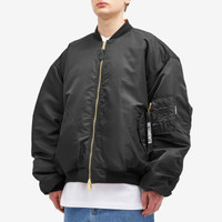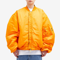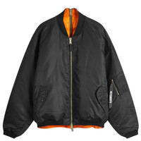 Made in collaboration with Alpha Industries, this VETEMENTS Double Zip Bomber Jacket is cut from a technical nylon in a twill weave. With a reversible design, side pockets add practicality, whilst a sleeve pocket adds utilitarian derived detailing. - 100% Nylon - Band Collar - Zip Closure - Side Pockets - Branded Zip Puller - Ribbed Trims
