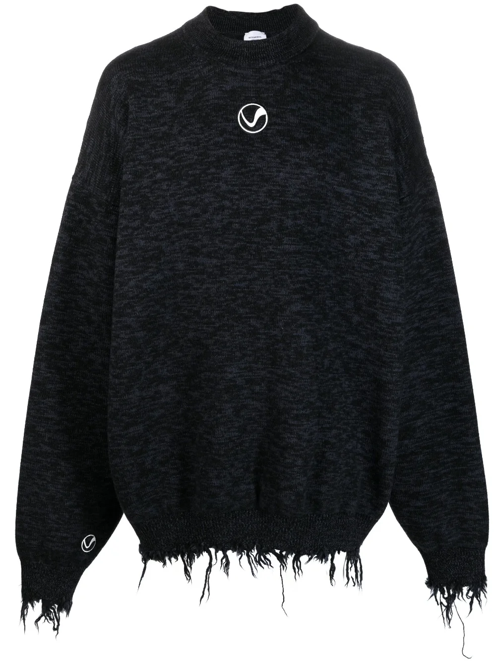embroidered-logo long-sleeve sweatshirt Inspired by everyday fashion with a subversive edge, this long-sleeve sweatshirt from Vetements features understated yet eye-catching details such as a contrasting logo detail at the front and slogan at the back. Highlights - Black - Merino wool - Embroidered logo - Slogan print to the rear - Round neck - Long sleeves Made in Italy Composition Merino 100% SIZE & FIT Model measurements Height 6 ft 1 in(1.85 m) Bust/Chest 38.58 in(98 cm) Hips 37 in(94 cm) Waist 30.31 in(77 cm) FittingInformation Designed for an oversized fit, offering additional room throughout Constructed with additional length on the sleeve Made with a heavyweight knit, this piece offers some stretch This piece fits true to size – take your usual size