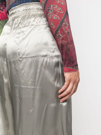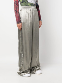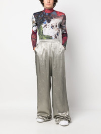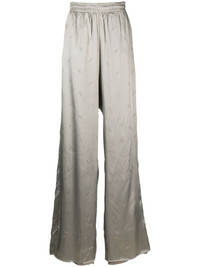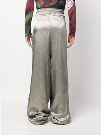 gradient wide-leg trousers Highlights - Grey - Cotton - All-over logo print - Gradient effect - Metallic effect - Elasticated waistband - Two side inset pockets - High waist - Wide leg - Extra-long length Imported Composition Outer: Viscose 100% Lining: Cotton 100% SIZE & FIT Model measurements Height 6 ft 1 in(1.86 m) Bust/Chest 34.64 in(88 cm) Hips 35.43 in(90 cm) Waist 27.55 in(70 cm) FittingInformation Designed with a wide-leg cut, these trousers allow for a close fit at the waist and offer a loose and roomy fit over the leg Designed with a wide leg, offering a loose and roomy fit The elasticated waist allows for a comfortable fit The elasticated waist allows for a comfortable fit Made from a midweight non-stretch fabric Made from a midweight non-stretch fabric This piece fits true to size – take your usual size This piece fits true to size – take your usual size