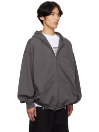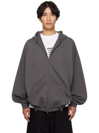 Gray Boxing Logo Oversized Zip-Up Hoodie
