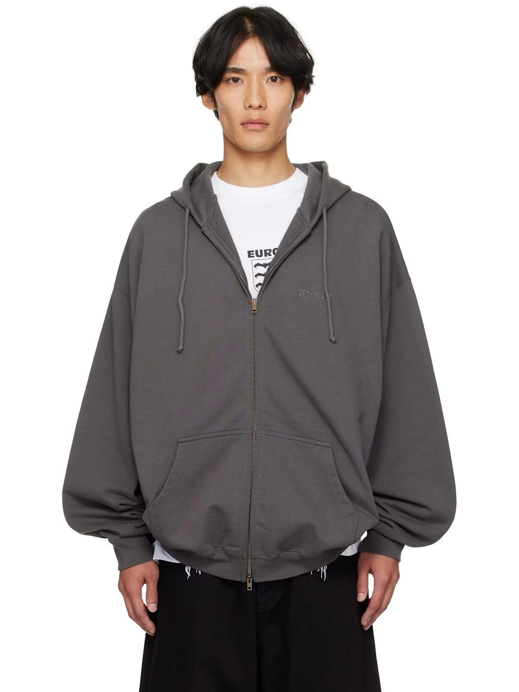 French terry hoodie. · Logo embroidered at hood and chest · Drawstring at hood · Zip closure · Patch pockets at front · Rib-knit hem and cuffs · Dropped shoulders Supplier color: Magnet Body: 80% cotton, 20% polyester. Trim: 74% cotton, 24% polyester, 2% elastane. Made in Portugal 252669M202017
