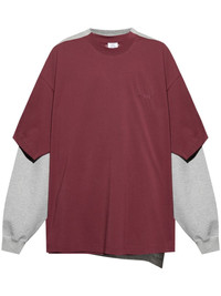 layered sweatshirt Highlights - Bordeaux red - Crew neck - Short sleeves - Long sleeves Imported Composition Cotton 100% SIZE & FIT Measurement CHEST 62.99 in(160 cm) SLEEVE LENGTH 24.01 in(61 cm) LENGTH 33.85 in(86 cm) Shoulder Width 26.37 in(67 cm) Washing instructions Read Manufacturer Guidelines