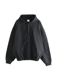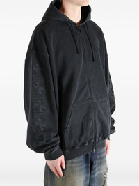 hooded embossed zip-up hoodie Highlights - Black - Embossed design on sleeves - Drawstring hood - Front zip fastening - Front pouch pocket - Relaxed fit Imported Composition Cotton 100% Washing instructions Machine Wash
