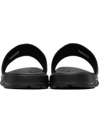 Rubber pool slides in black. · Open toe · Logo-embossed strap at vamp · Mesh lining · Molded rubber footbed · Textured rubber sole Part of the VETEMENTS x Reebok collaboration. Supplier color: Black/Neon yellow Rubber. Made in Viet Nam 251669M234001