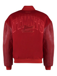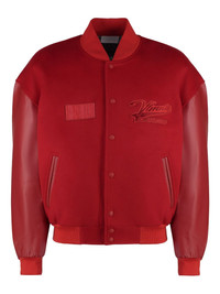 logo-embroidered bomber jacket Highlights - Blood red - Front press-stud fastening - Two side slit pockets - Panelled design - Long sleeves Made in Italy Composition Virgin Wool 100%