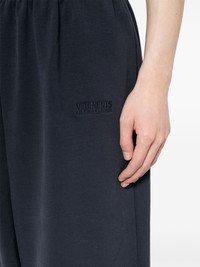 logo-embroidered track pants Reflecting the brand's penchant for logomania, VETEMENTS presents these navy blue track pants. Crafted from stretch cotton, they have a relaxed design decorated with a tonal logo embroidered at the front and rear. Highlights - Navy blue - Cotton blend - Embroidered logo - Elasticated waistband - Rear patch pocket - Wide leg - Elasticated ankles - When buying this unisex item, keep in mind that it is graded in standard men's sizing. Imported Composition Cotton 80%, Polyester 20% SIZE & FIT Model measurements Height 6 ft 2 in(1.87 m) Bust/Chest 33.07 in(84 cm) Hips 35.43 in(90 cm) Waist 26.77 in(68 cm) FittingInformation This piece is unisex and is designed for a tapered-leg, whether you usually select women's or men's sizes Made from a midweight non-stretch fabric, this piece offers minimal elasticity when worn Washing instructions Machine Wash