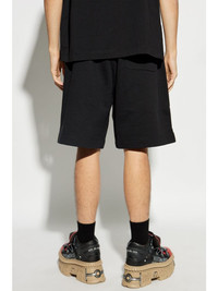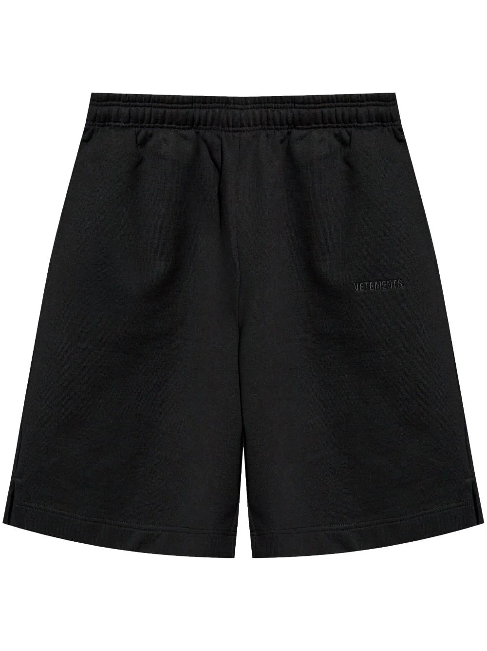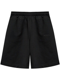 logo-embroidered track shorts Highlights - Black - Cotton - Jersey texture - Elasticated waistband - Mid-rise - Two side slit pockets - Embroidered logo at the leg - Knee-length Imported Composition Cotton 100%