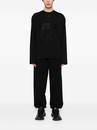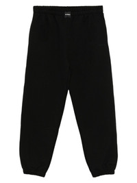 logo-embroidered trousers Highlights - Black - Elasticated waistband with internal drawstring - Two side slit pockets Imported Composition Cotton 85%, Polyester 15% SIZE & FIT Model measurements Height 6 ft 2 in(1.87 m) Bust/Chest 33.07 in(84 cm) Hips 35.43 in(90 cm) Waist 26.77 in(68 cm) FittingInformation Designed for a relaxed tapered leg, allowing a comfortable loose fit above the knee with a closer fit towards the calves Adjust this piece’s waistband to your preference using the drawstring Made from a heavyweight non-stretch fabric, this piece offers minimal elasticity when worn Washing instructions Machine Wash