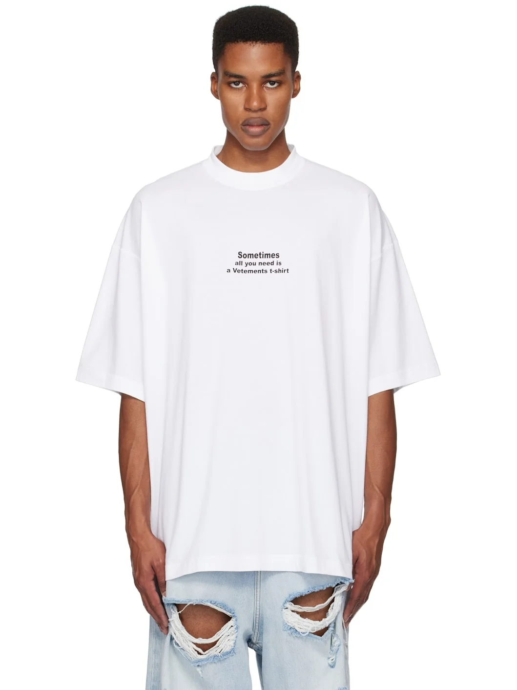 Oversized cotton jersey T-shirt. · Rib-knit crewneck · Logo and text printed at chest · Dropped shoulders · Logo embroidered at back collar Supplier color: White