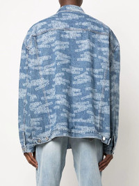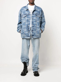 logo-print denim jacket light blue cotton light wash all-over logo print two chest flap pockets front button fastening classic collar long sleeves buttoned cuffs straight hem Made in Italy Composition Cotton 100% SIZE & FIT Model measurements Height 6 ft 2 in(1.88 m) Bust/Chest 36.61 in(93 cm) Hips 35.82 in(91 cm) Waist 27.95 in(71 cm) FittingInformation This piece fits true to size. We recommend you get your regular size Cut for a loose fit Made with a mid-weight non-stretch fabric Washing instructions Machine Wash