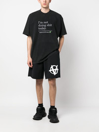 logo-print knee-length shorts Highlights - Black - Cotton blend - Logo print at the leg - Elasticated waistband - Two side slit pockets - Rear patch pocket - Knee-length - When buying this unisex item, keep in mind that it is graded in standard men's sizing. Imported Composition Cotton 80%, Polyester 20% SIZE & FIT Model measurements Height 5 ft 10 in(1.78 m) Bust/Chest 31.49 in(80 cm) Hips 37 in(94 cm) Waist 23.62 in(60 cm) FittingInformation This piece is unisex and is designed with a wide-leg, whether you usually select women's or men's sizes Adjust this piece’s waistband to your preference using the drawstring Made from a midweight non-stretch fabric, this piece offers minimal elasticity when worn Washing instructions Machine Wash