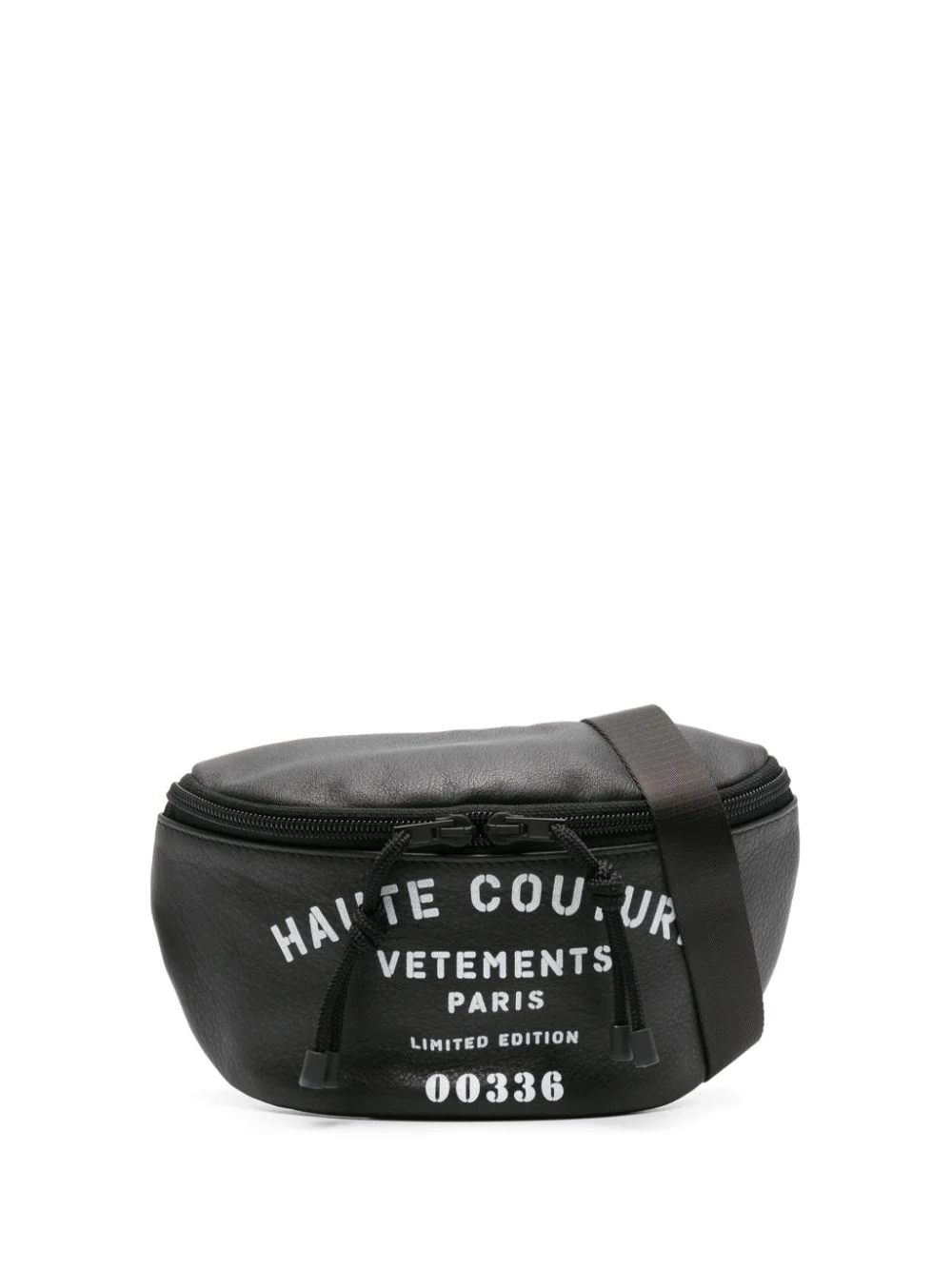 logo-print leather belt bag Highlights - Black/white - Calf leather - Text print - Logo print to the front and rear - Front zip fastening - Adjustable waist strap - Main compartment - Rear zip-fastening pocket - Logo-jacquard lining Made in Italy Composition Outer: Calf Leather 100% Lining: Polyester 100% SIZE & FIT Model measurements Height 6 ft 2 in(1.87 m) Bust/Chest 36.41 in(92.5 cm) Hips 37 in(94 cm) Waist 29.52 in(75 cm) Measurement DEPTH 3.14 in(8 cm) HEIGHT 5.9 in(15 cm) Maximum strap length 19.68 in(50 cm) WIDTH 9.05 in(23 cm)