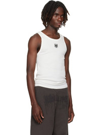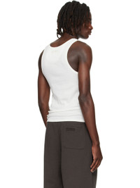 Rib-knit stretch cotton tank top. · Scoop neck · Graphic printed at chest · Logo embroidered at back collar Supplier color: White Body: 97% cotton, 3% elastane. Trim: 100% cotton. Made in Portugal 252669M214002
