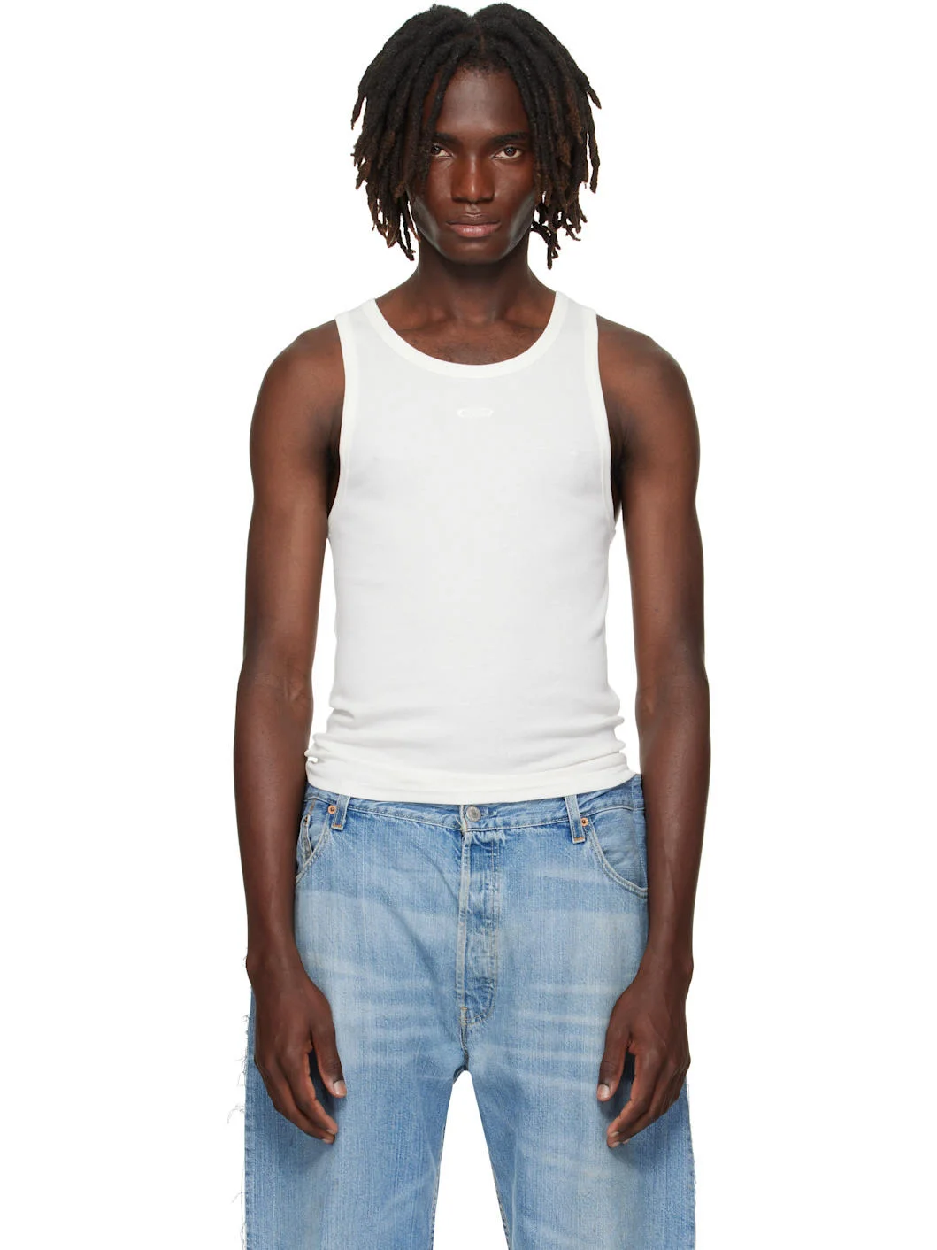Rib-knit stretch cotton tank top. · Scoop neck · Logo embroidered at chest and back collar Supplier color: White Body: 97% cotton, 3% elastane. Trim: 100% cotton. Made in Portugal 252669M214003