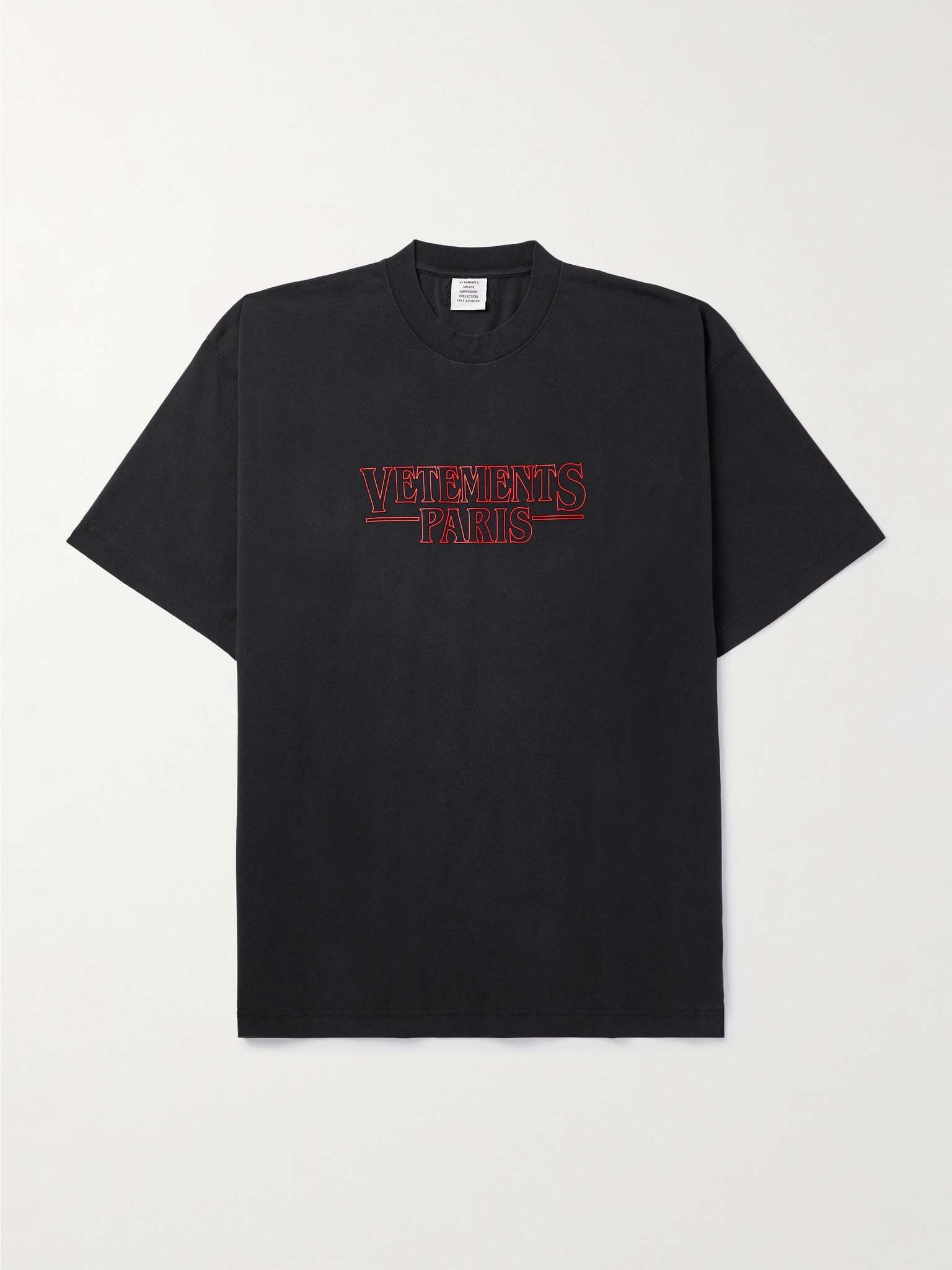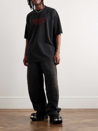 Since its founding in Paris in 2014, Vetements has been embraced by streetwear enthusiasts and high fashion pundits alike. Embodying its effortless cool, this oversized T-shirt is cut from smooth cotton-jersey and printed with a retro graphic. It'll look great with a logo cap and sneakers. Size & Fit - Fits true to size. Take your normal size - Oversized fit, designed to be worn loose - Lightweight, stretchy fabric - Model is shown wearing a M - Model measures: chest 38"/ 96cm, height 6'0"/ 183cm Details & Care - Black and red cotton-jersey - 100% cotton - Machine wash