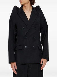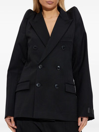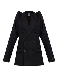 padded-shoulder double-breasted jacket Highlights - Black - Padded shoulders - Double-breasted fastening - Peak lapels - Long sleeves - Straight hemline - Wool fabric Made in Italy Composition Virgin Wool 100% Washing instructions Read Manufacturer Guidelines