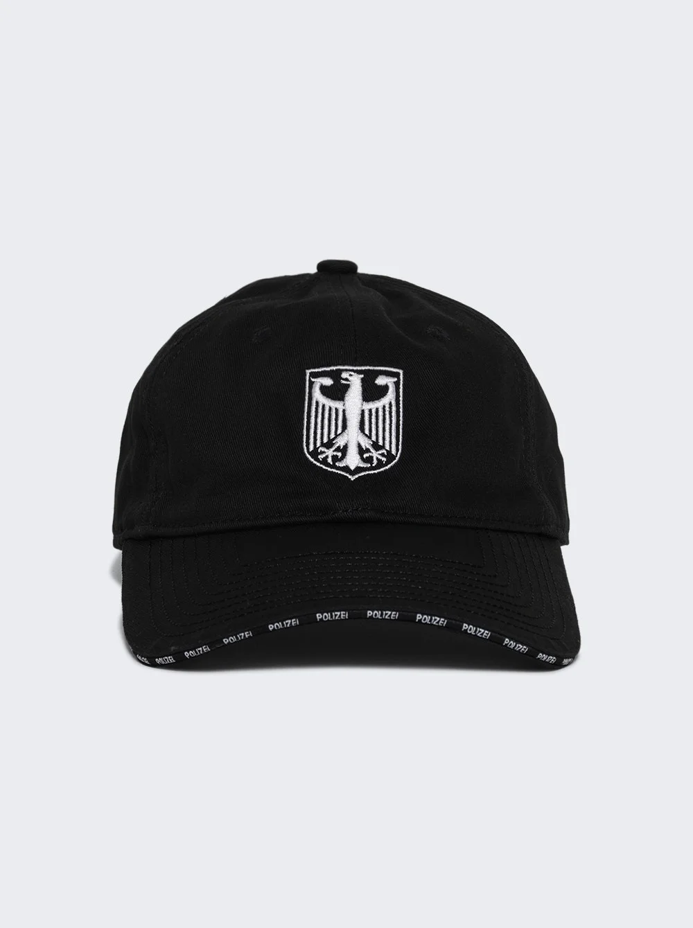 Details - Cotton baseball cap - Embroidered eagle on front - Polizei taping along brim - Material: Cotton Vendor Color Code: Brand Style: UH76CA300BW Designer/Brand: VETEMENTS