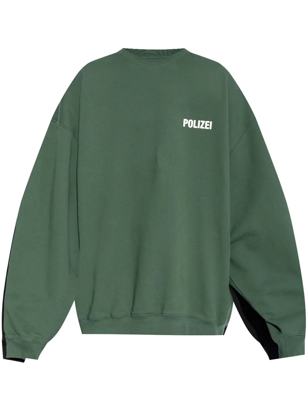 Polizei sweatshirt Highlights - Green/black - Cotton blend - Colour-block panelled design - Two-tone design - Polizei print to the front - Securite print to the rear - Logo print to the rear - Crew neck - Drop shoulder - Long sleeves - Ribbed edge - Straight hem Imported Composition Polyester 80%, Cotton 20%