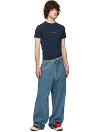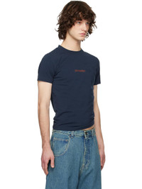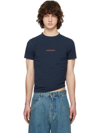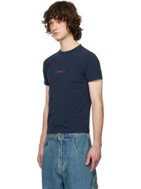 Cotton jersey T-shirt. · Rib-knit crewneck · Text printed at chest · Logo embroidered at back collar Supplier color: Navy Body: 90% cotton, 10% elastane. Trim: 97% cotton, 3% elastane. Made in Portugal 261669M213036