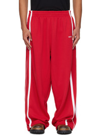 Jersey sweatpants. · Concealed drawstring at elasticized waistband · Three-pocket styling · Logo embroidered at front · Bungee-style drawstring at cuffs · Stripes at outseams · Full mesh lining Supplier color: Red Body: 100% polyester. Lining: 100% polyamide. Pocket lining: 95% cotton, 5% elastane. Made in Italy 252669M190007