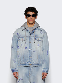 Scribbled Hooded Jacket Light Blue