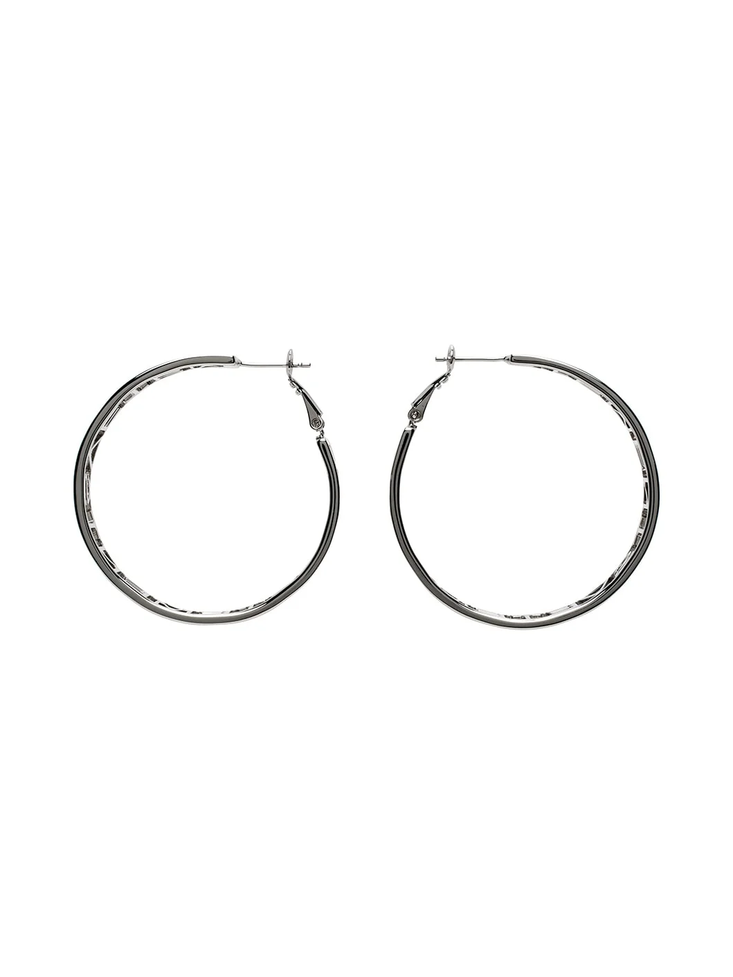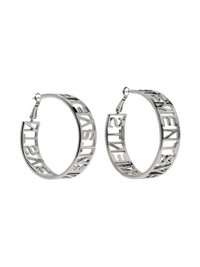 Pair of hoop earrings in silver-tone brass. Logo cutout throughout. · Hinged-post fastening · D2" Supplier color: Silver Brass. Made in Italy 241669M144000