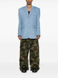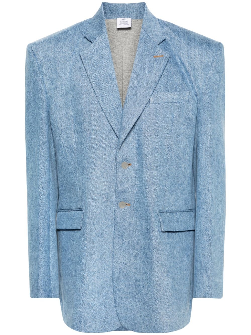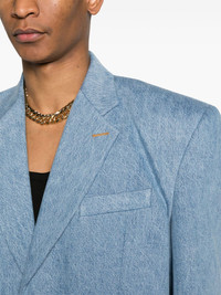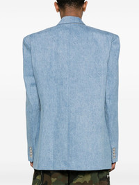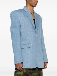 single-breasted denim blazer Highlights - Indigo blue - Cotton - Denim - Notched lapels - Front button fastening - Shoulder pads - Long sleeves - Buttoned cuffs - Chest welt pocket - Two front flap pockets - Two internal buttoned pockets - American rear vent - Straight hem - Cotton lining - When buying this unisex item, keep in mind that it is graded in standard men's sizing. Made in Italy Composition Outer: Cotton 100% Lining: Viscose 100%, Cotton 100% SIZE & FIT Model measurements Height 5 ft 10 in(1.79 m) Bust/Chest 33.07 in(84 cm) Hips 35.82 in(91 cm) Waist 24.4 in(62 cm) FittingInformation This unisex piece is designed for an oversized fit whether you usually select women's or men's sizes The internal shoulder pads offer a structured shape Made from a midweight non-stretch fabric