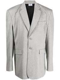 single-breasted shoulder-pad blazer grey cotton blend shoulder pads classic lapels front button fastening front flap pockets long sleeves straight hem Made in Italy Composition Outer: Cotton 80%, Polyester 20% Lining: Viscose 100% SIZE & FIT Model measurements Height 6 ft 1 in(1.85 m) Bust/Chest 35.82 in(91 cm) Hips 37.79 in(96 cm) Waist 29.13 in(74 cm) FittingInformation This piece fits true to size. We recommend you get your regular size Cut for a loose fit Made with a mid-weight fabric Washing instructions Machine Wash