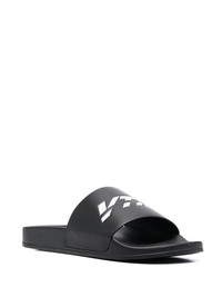 logo-print slides black/white leather open toe moulded footbed rubber outsole Made in Italy Composition Outer: Leather 100% Lining: Rubber 100%, Calf Leather 100% Sole: Rubber 100% SIZE & FIT Measurement HEEL 0.98 in(2.5 cm) Sole height 0.59 in(1.5 cm)