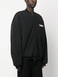 slogan-print cotton bomber jacket Highlights - Jet black - Cotton - Slogan print - Drop shoulder - Ribbed band collar - Long sleeves - Front zip fastening - Two front pouch pockets - Ribbed cuffs and hem Imported Composition Cotton 100% SIZE & FIT Model measurements Height 6 ft 2 in(1.87 m) Bust/Chest 36.41 in(92.5 cm) Hips 37 in(94 cm) Waist 29.52 in(75 cm) FittingInformation Designed for an oversized fit, offering additional room throughout The ribbed hem offers a close, comfortable fit Made from a padded stretch fabric, giving it elasticity and a flexible fit This piece fits true to size – take your usual size