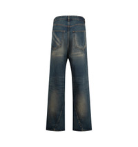 VETEMENTS Spiral Jeans featuring non-stretch denim, fading and whiskering throughout, belt loops, five-pocket styling, button fly, curved inseam and outseams and logo-engraved hardware. 100% cotton. Made in Italy. DESIGNER STYLE ID: ME76DP077N2 COLOR: NIGHT BLUE